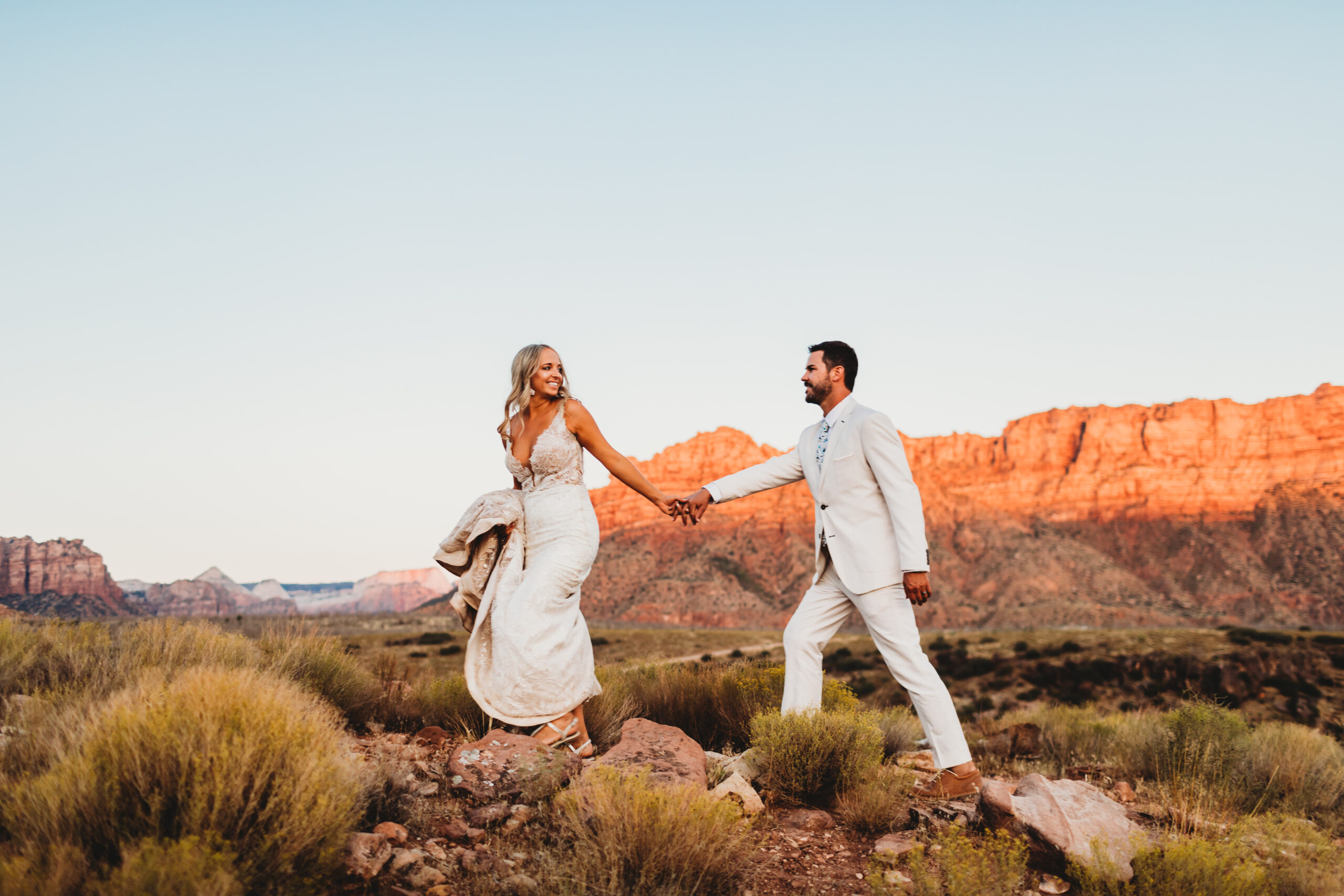 Even though they had an amazing party the night before with friends and family they were up early in the morning the next day for their wedding. We hiked 3 miles roundtrip to the canyon overlook in Zion National Park for some breath-taking destination wedding photos.